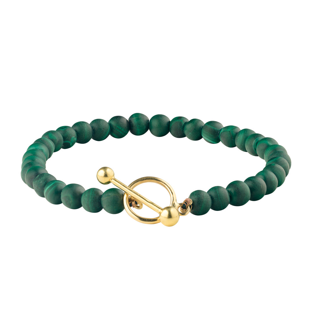 The Toggle clasp is crafted in 18k solid gold with green malachite wrapped around like a gentle armor, offering both modern edge and a sense of serene balance.