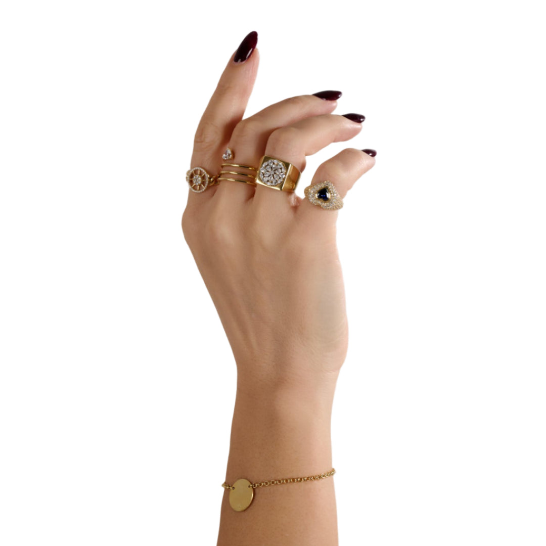 Crafted in 18k solid gold with intricate palace-inspired detailing. Part of the Royal Collection inspired by Dolmabahçe Palace, Istanbul. A signet ring for the modern woman who carries herself with royal grace and speaks her truth with unwavering sincerity.